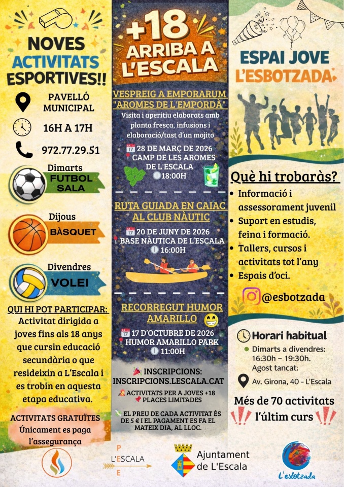 Les inscripcions ja es poden fer a inscripcions.lescala.cat fins a omplir les places. La major part del cost de l’activitat la cobreix l’àrea de Joventut de l’Ajuntament de l’Escala i els usuaris només han de pagar 5 euros.